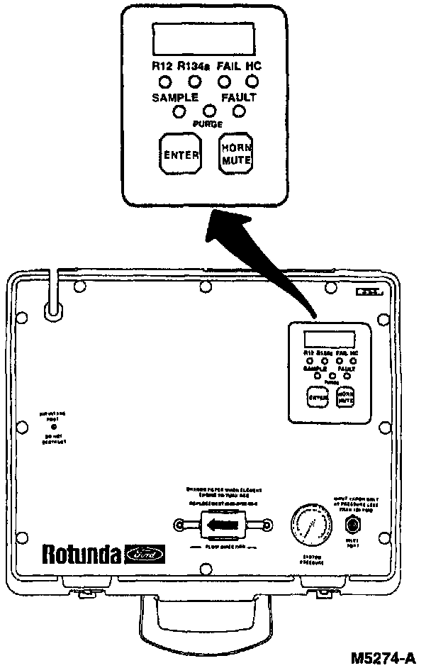 Prior to recovering or charging the refrigerant from any vehicle, you must use a refrigerant identifier such as Rotunda A/C Refrigerant Analyzer 198-00001 or equivalent. The refrigerant identifier is used to identify gas samples taken directly from the refrigeration system or storage containers.The identifier will display: