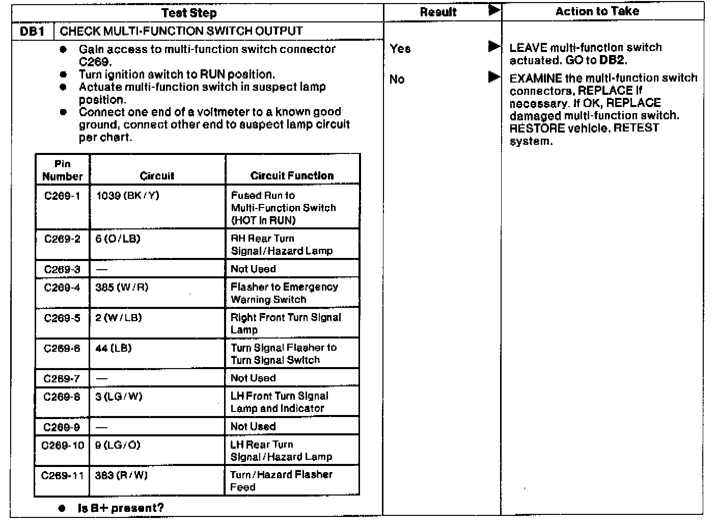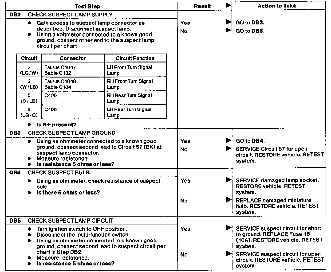 Test DB: Individual Turn Signal/Flasher Lamp Inoperative