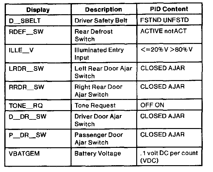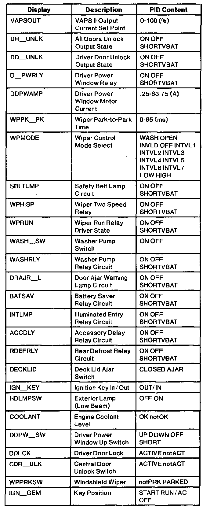 Pinout Values and Diagnostic Parameters