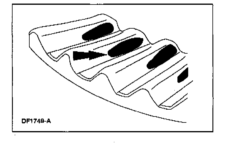 6. Apply a marking compound to a third of the gear teeth on the differential ring gear. Rotate the differential ring gear several complete turns in both directions until a good, clear tooth pattern is obtained. Inspect the contact patterns on the ring gear teeth.