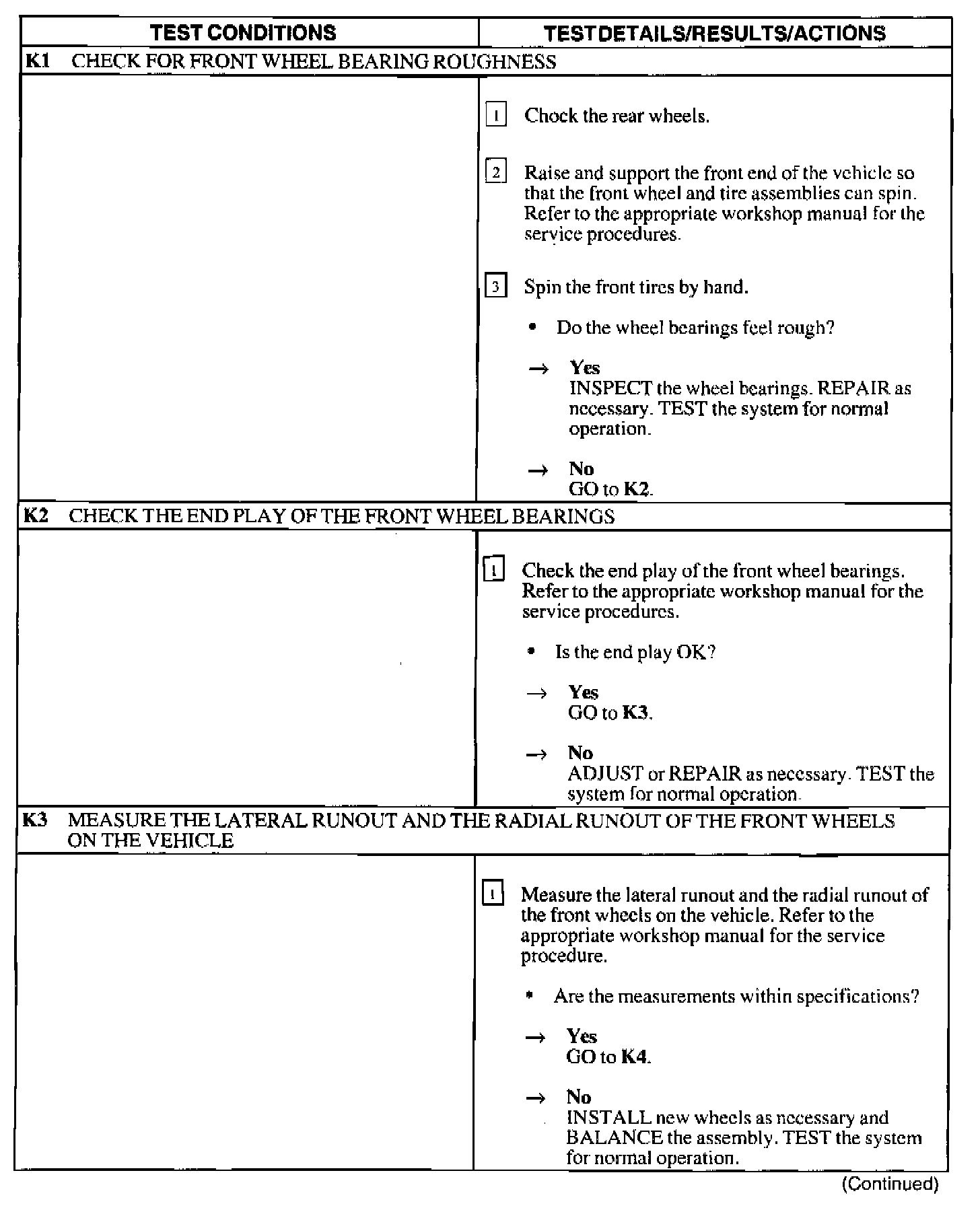 Pinpoint Test K: High Speed Shake or Shimmy Diagnosis