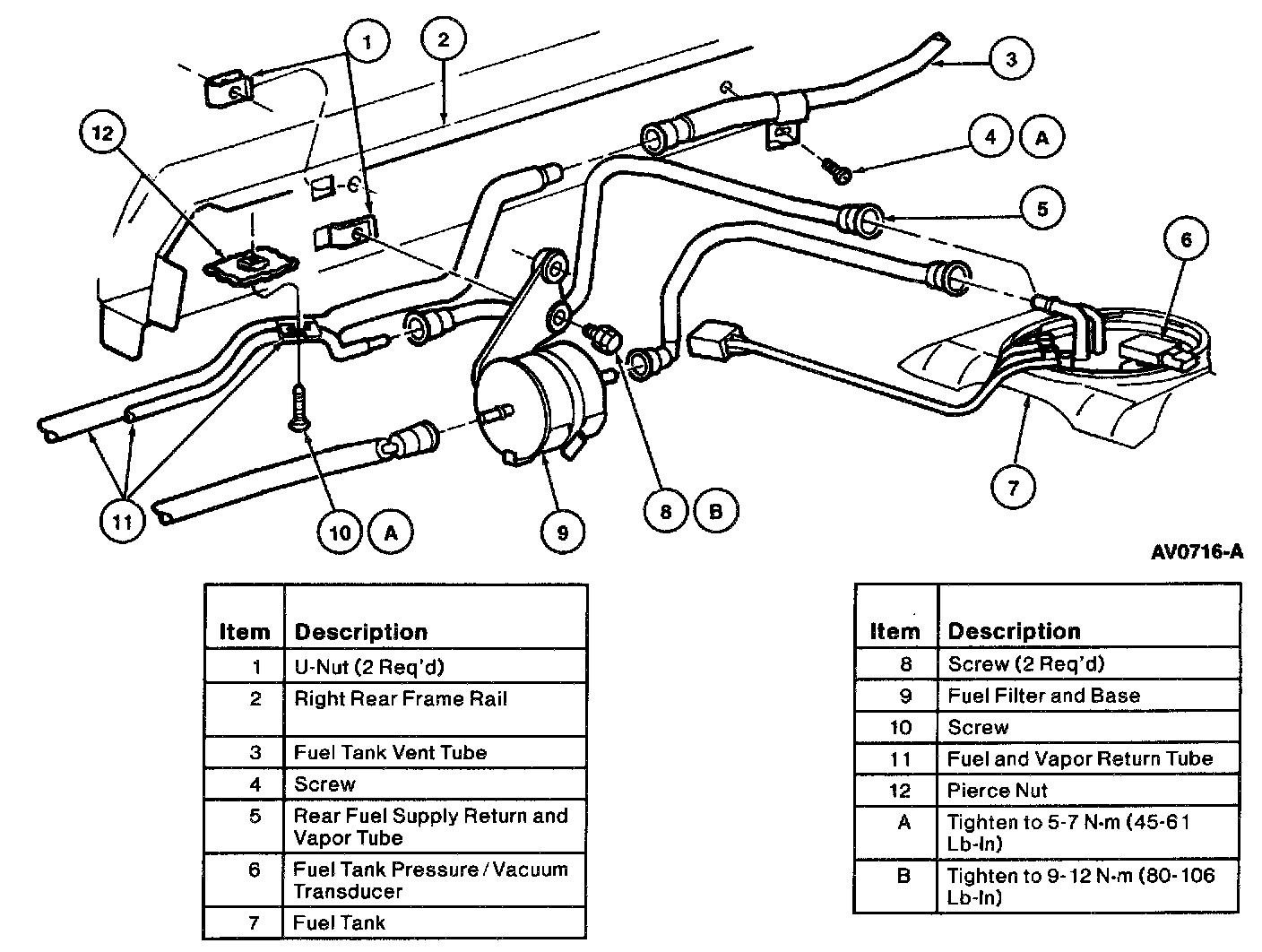 The flexible fuel vehicle fuel filter and base is only compatible with fuel ethanol. Use of a gasoline fuel filter and base will result in failure of the fuel filter and base. The fuel filter and base is located at the RH rear frame rail adjacent to the RH front corner of the fuel tank.