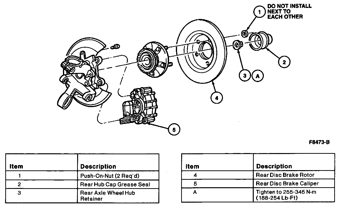 2. Install new rear axle wheel hub retainer. Tighten to 255 - 345 Nm (188 - 254 ft. lbs.).