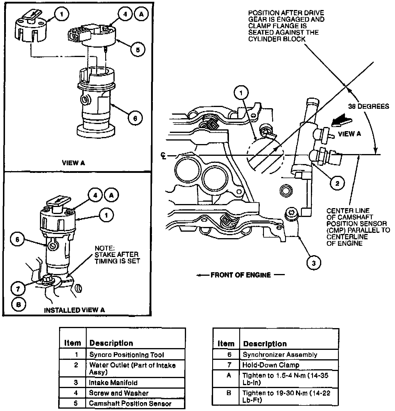 CAUTION: A special service tool such as Syncro Positioning Tool 303-58g must be used to position the synchronizer assembly prior to installation of the camshaft position sensor. Failure to follow this procedure will result in improper camshaft position sensor alignment. This will result in the fuel system being out of time with the engine, possibly causing engine damage.