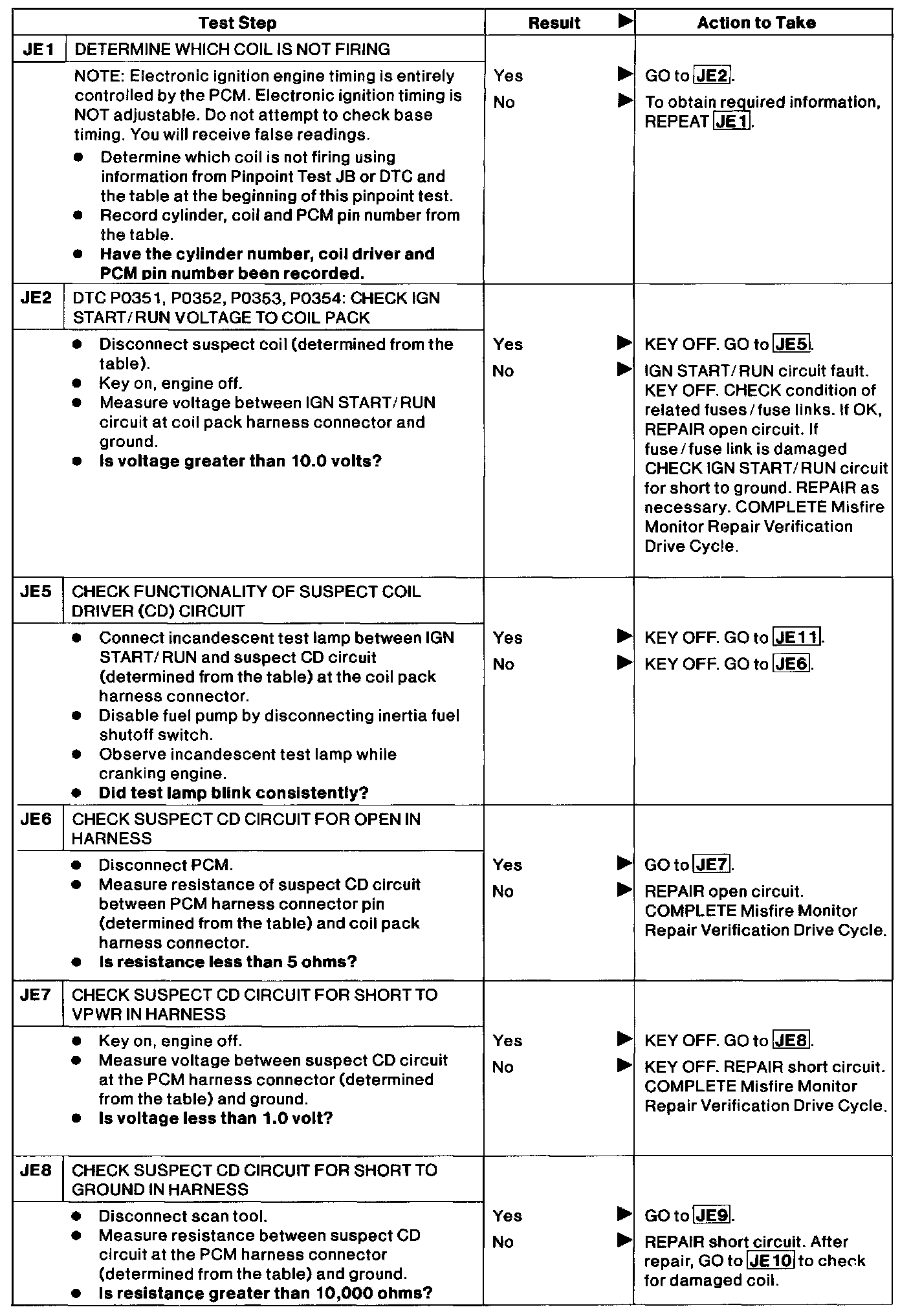 JE - Integrated Ignition Coil 1, 2, 3 or 4 Failure