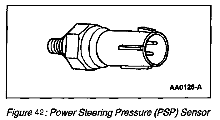 The power steering pressure sensor monitors the hydraulic pressure within the power steering system. The PSP sensor is a normally closed and opens as the hydraulic pressure increases. The PCM uses the input signal from the PSP sensor to compensate for additional loads on the engine by adjusting the idle rpm and preventing engine stall during parking maneuvers. Also, the PSP sensor signals the PCM to adjust transmission Electronic Pressure Control (ECP) pressure during the increased engine load, for example during parking maneuvers.