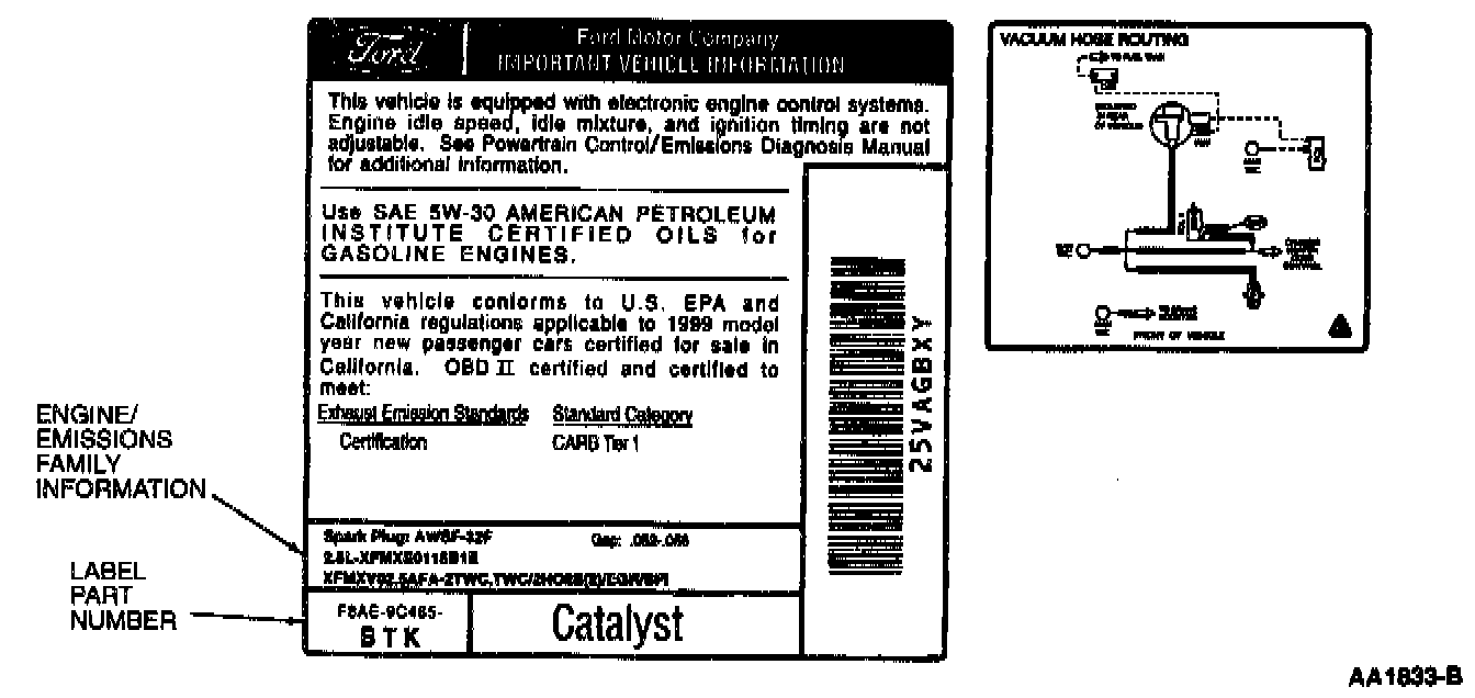 Each vehicle has a decal containing emission control information that applies specifically to the vehicle and engine. The specifications on the decal are critical to servicing emissions systems.
