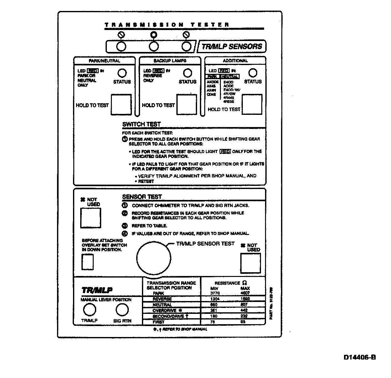 Rotunda TR/MLP Sensor Tester Overlay:
