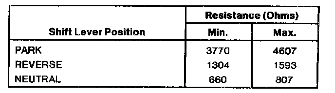 Switch Tests-Park/Neutral, Backup Lamp and Optional Circuits