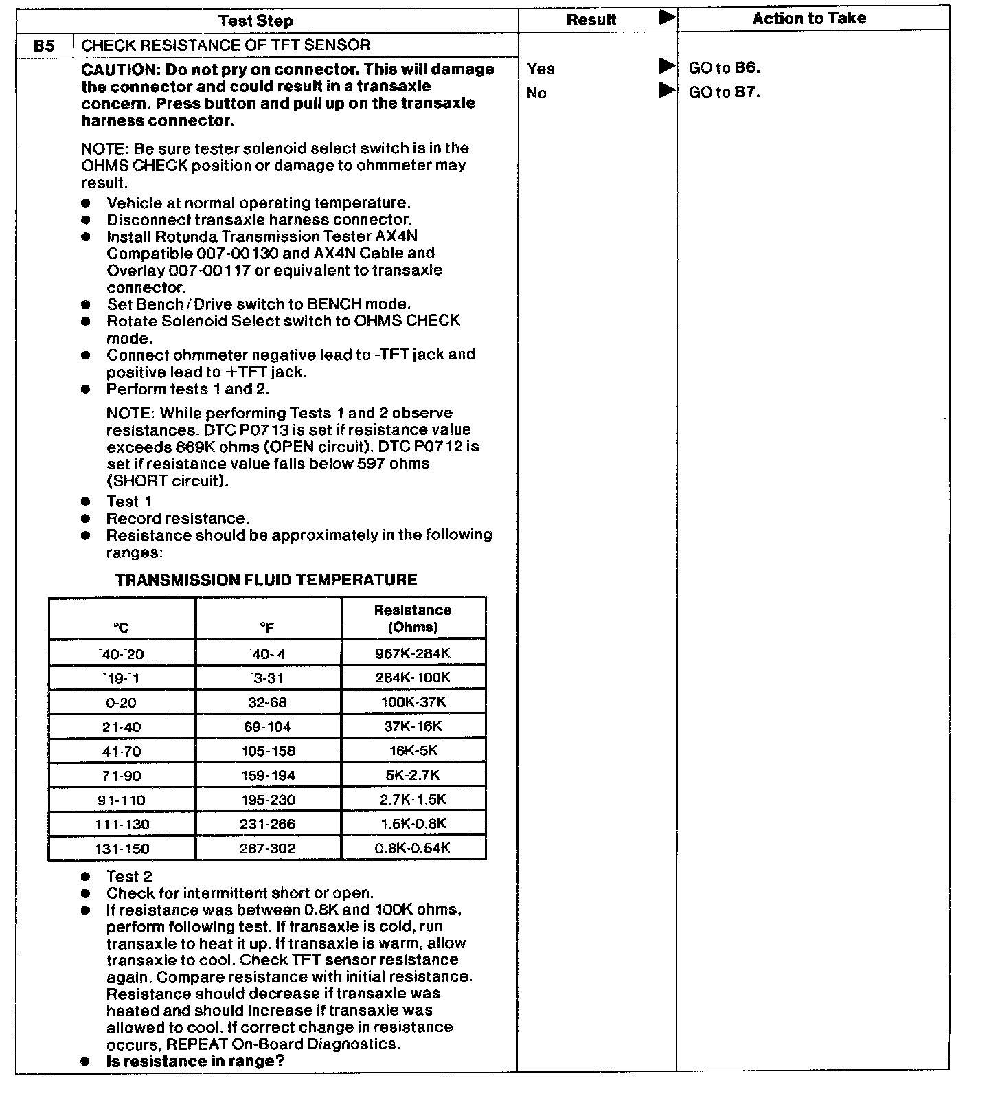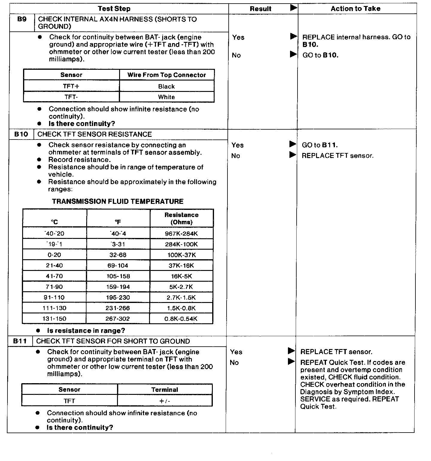 PINPOINT TEST B: TRANSMISSION FLUID TEMPERATURE (TFT) SENSOR