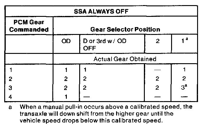 4. When a manual pull-in occurs above a calibrated speed the transmission will not downshift from the higher gear until the vehicle speed drops below the calibrated speed.