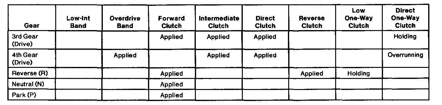 BAND/CLUTCH APPLICATION CHART No. 601