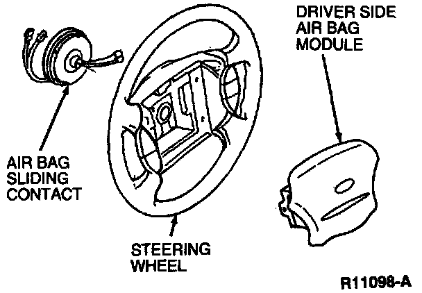 The driver air bag module is mounted in the center of the steering wheel. The driver air bag module consists of the following components: