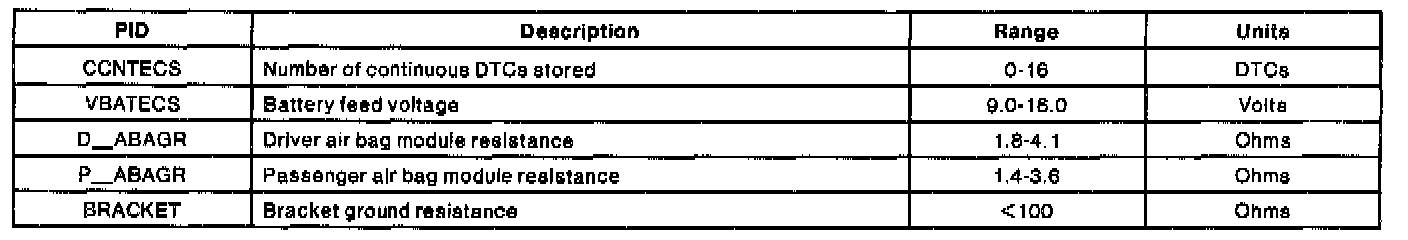 Pinout Values and Diagnostic Parameters