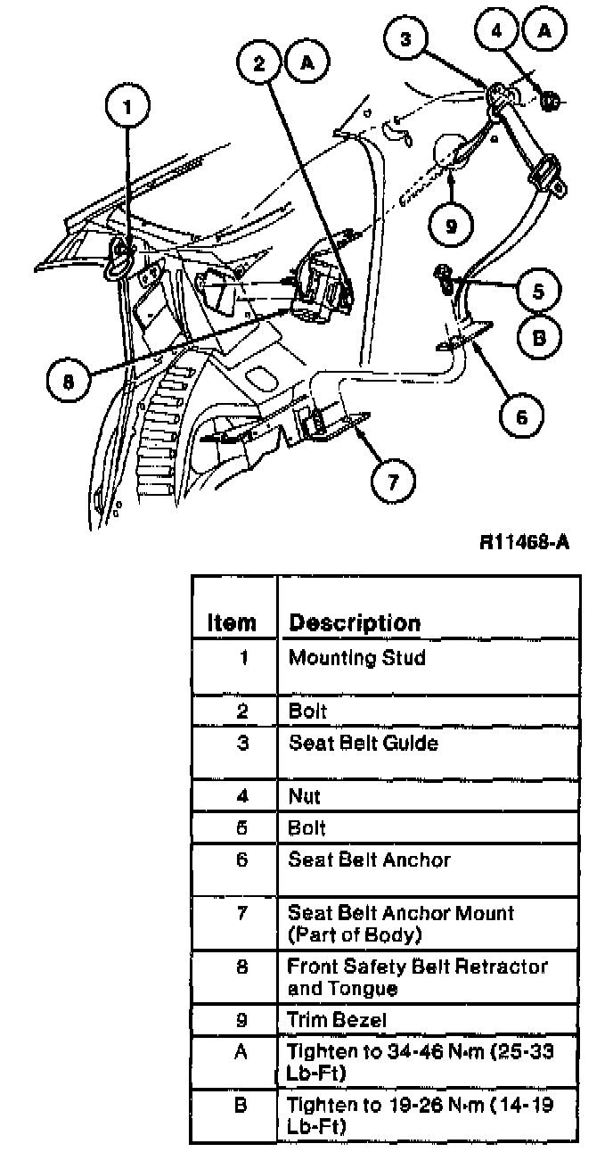 5. Tighten bolt on seat belt anchor to 19-26 Nm (14-19 lb-ft).