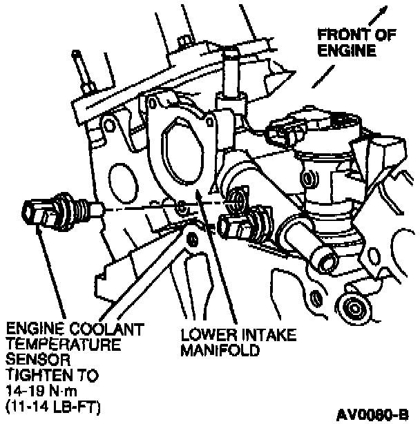 2. Tighten engine coolant temperature sensor to 14-19 N.m (11-14 Lb-Ft).