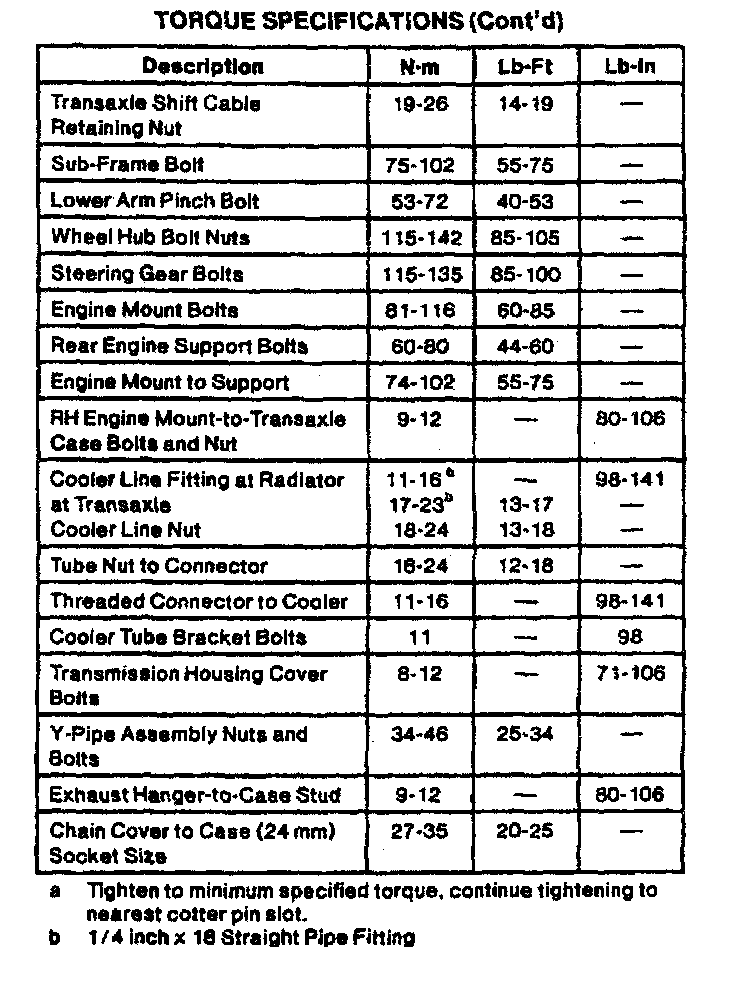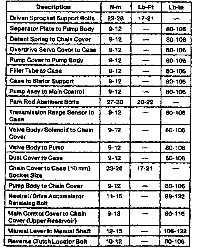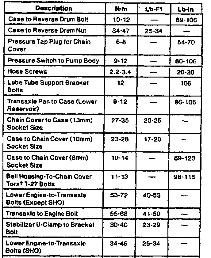 AX4N 4-spd A/T, Transaxle Torque (Taurus/Sable):