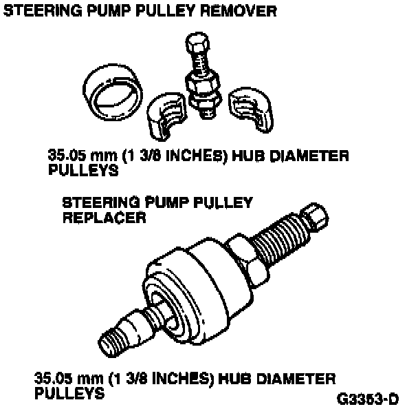 11. Remove power steering pump pulley from power steering pump shaft using Steering Pump Pulley Remover 211-016 (T69L-10300-B).