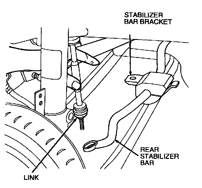 1. Position rear stabilizer bar link in shock absorber bracket. Install rear stabilizer bar link, washer and nut. Tighten to 6.8 - 9.2 Nm (60 - 81 inch lbs.