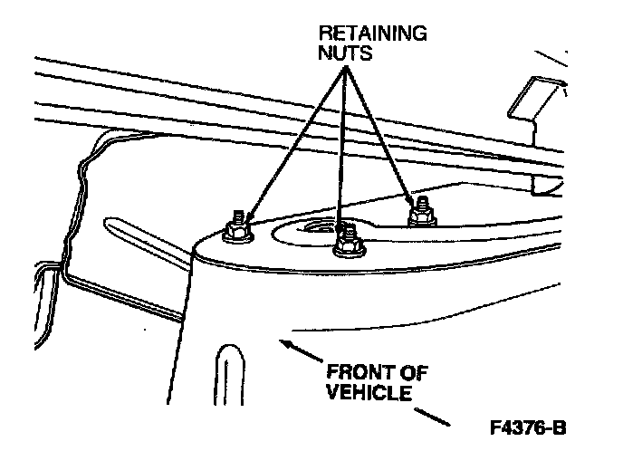 11. Tighten three top mount-to-body nuts to 25 - 34 Nm (19 - 25 ft. lbs.).