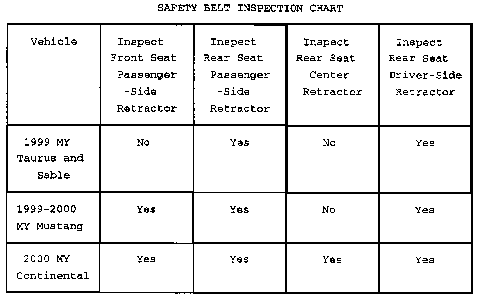 INSPECTION1. Using the "Safety Belt Inspection Chart", determine which retractors need to be inspected.