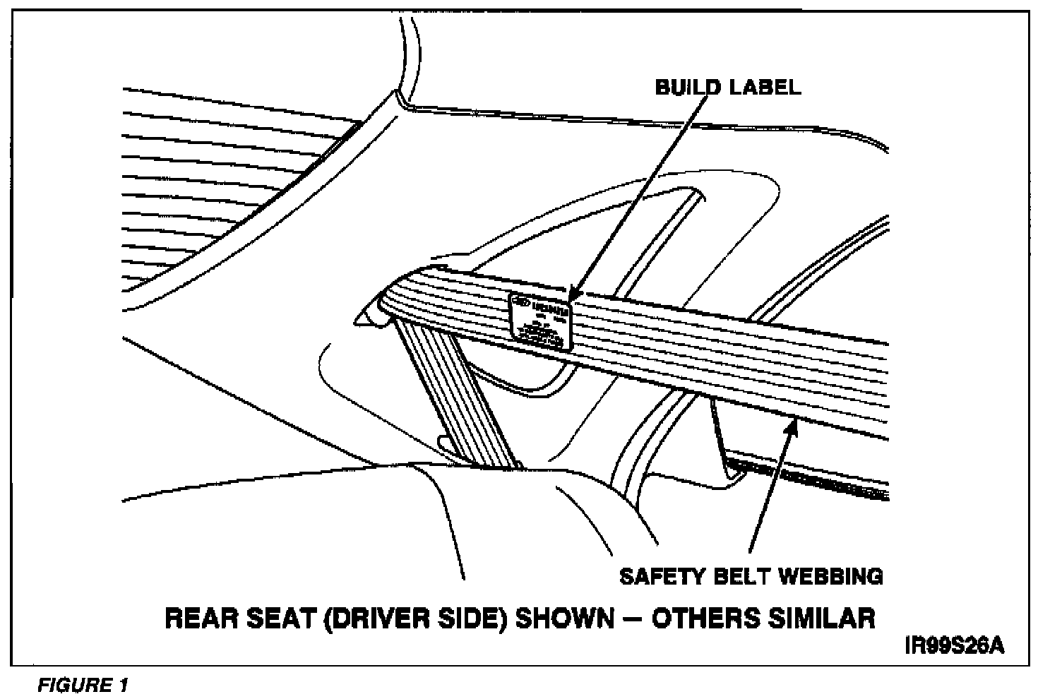 2. On the retractors that need to be inspected, spool-out the safety belt webbing until the build label is visible. See Figure 1. IF THE SAFETY BELT WEBBING WILL NOT SPOOL-OUT, THE SAFETY BELT RETRACTOR MUST BE REPLACED.
