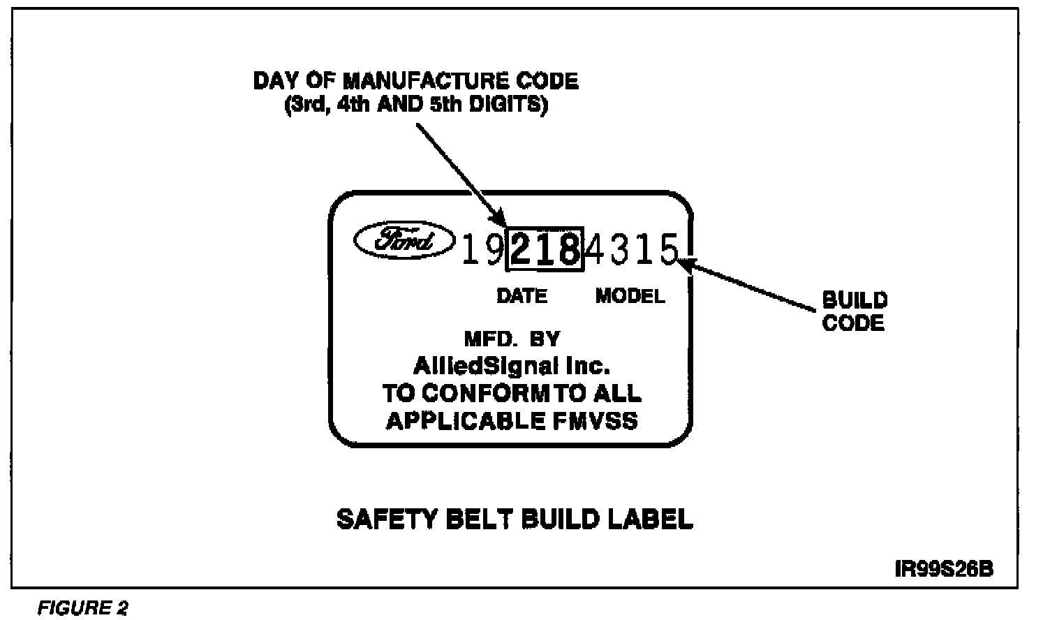 4. Identify the third, fourth and fifth digits of the build code. See Figure 2. This is the day of manufacture (i.e. 218 = two hundred and eighteenth day of the year).