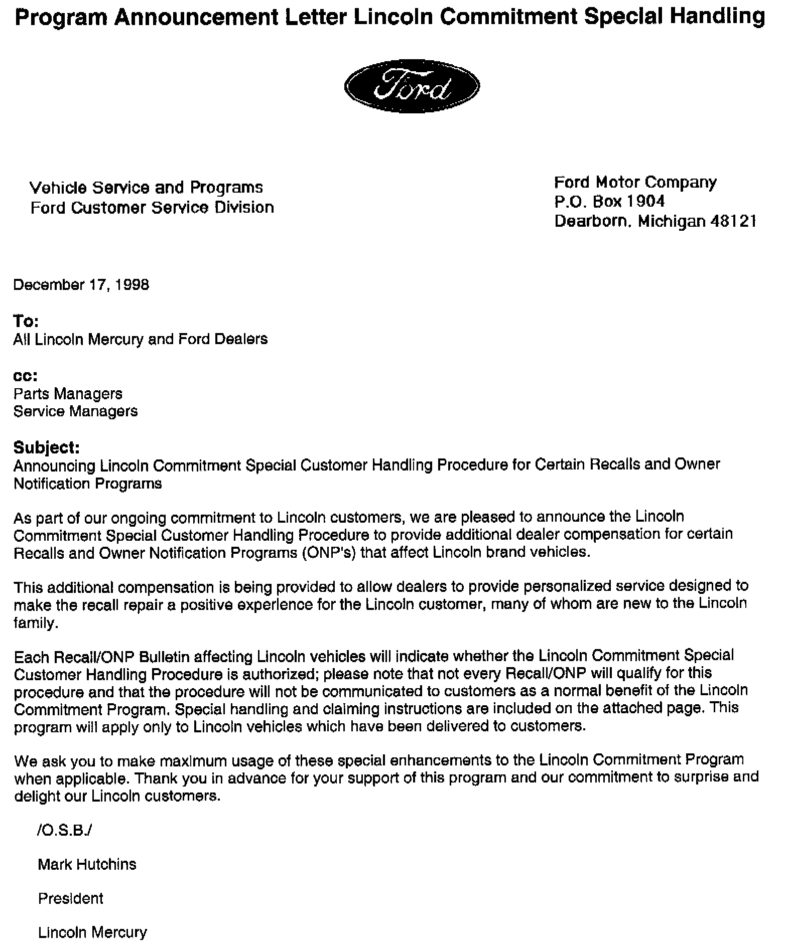 Attachment IV - Lincoln Commitment Announcement Letter