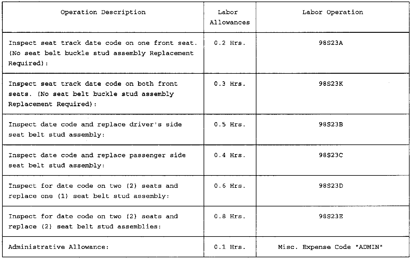 We expect that about one-half of the vehicles you inspect will need to have a replacement Seat Belt Buckle Attachment Assembly installed.Therefore, we will direct ship approximately 50% of your affected vehicle list immediately.