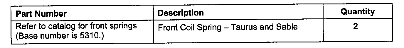 Affected front coil springs are subject to random selection for return to the Ford Warranty Parts Return Center (WPRC). Refer to your daily PEARS (Parts Evaluation and Return System) register for part disposition and return instructions.