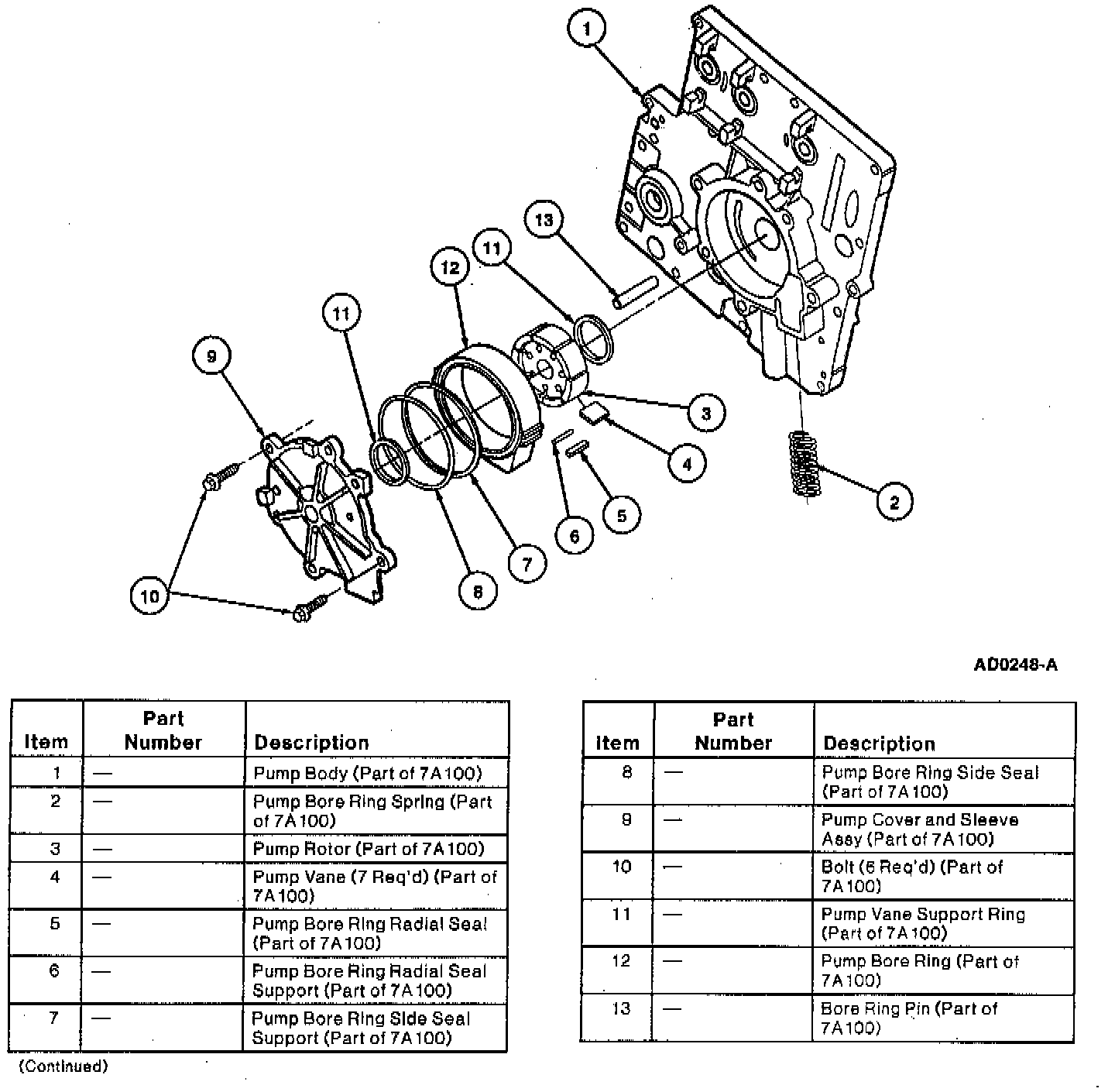 The pump assembly has the following parts: