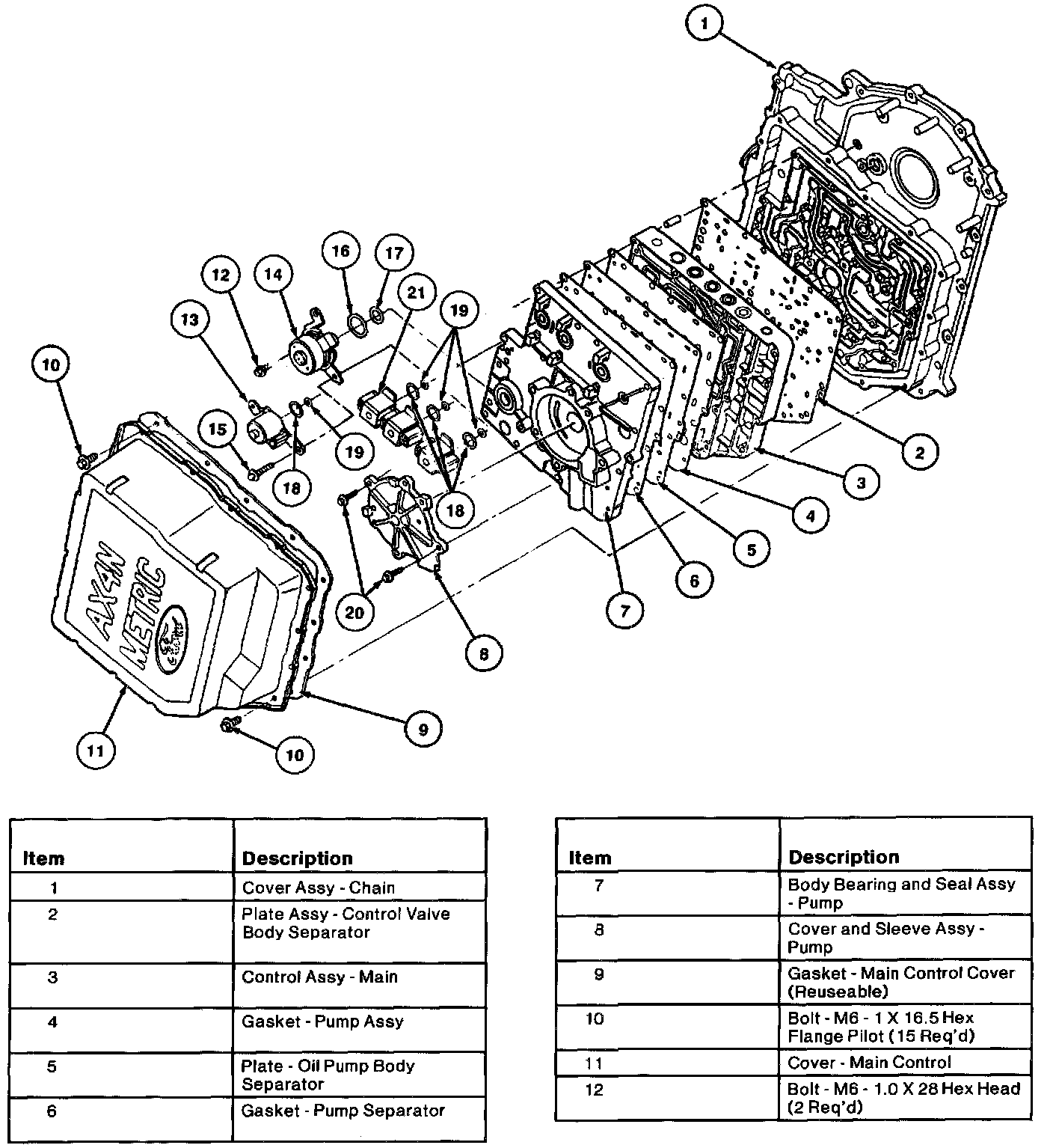 Gaskets are used for the separator plate between the pump assembly body and valve body. The separator plate between the valve body and chain cover has integral gaskets.