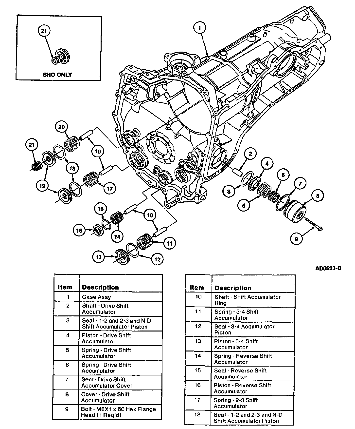 The low-intermediate (N-D) accumulator is located in the bottom of the transaxle case.