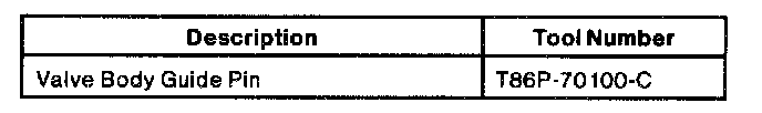 Use Valve Body Guide Pin T86P-70100-C to position main control valve body and install pump assembly and main control valve body retaining bolts. Tighten bolts to 9-12 Nm (80-106 inch lbs.) in the sequence shown.