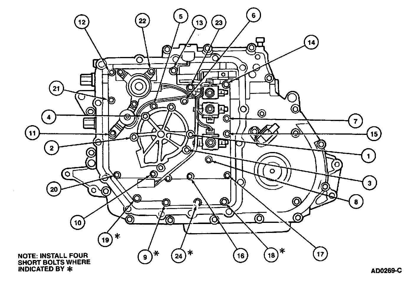 20. Start engine, move transaxle range selector lever through all ranges and inspect for leaks.