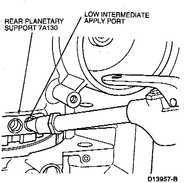 28. Apply dry compressed air, regulated to 40 psi, to low/intermediate apply port (located in rear planet support). Make sure the piston strokes. Check for air leaking past the piston seal.