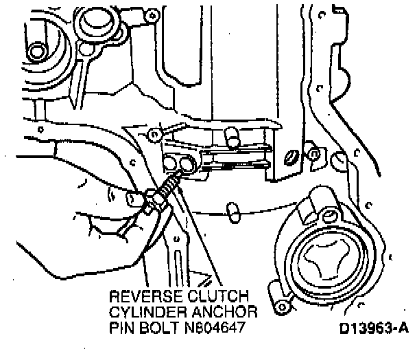 38. Install reverse clutch cylinder anchor pin bolt and locknut finger-tight. Do not tighten to specified torque at this time.