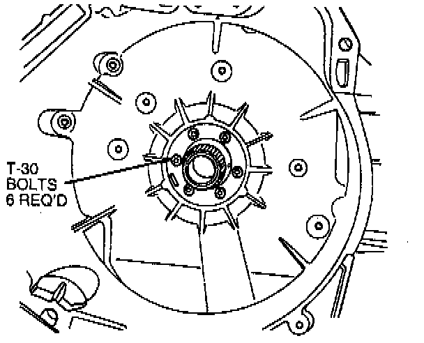 If removed, install driven sprocket support. Install six (T-30) Torx (R) bolts and tighten to 9-12 Nm (80-106 inch lbs.).