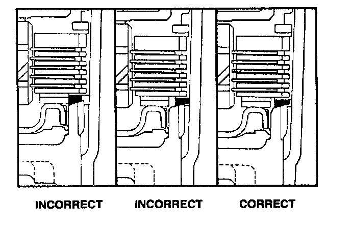 13. Perform the end clearance check for the planetary support. If end clearance is not within specification, replace the selective fit beveled retaining ring to obtain proper clearance.