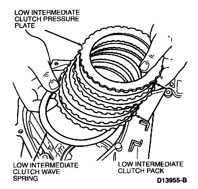 Install low/intermediate clutch wave spring, low/intermediate clutch pack and low/intermediate clutch pressure plate over the one-way clutch.
