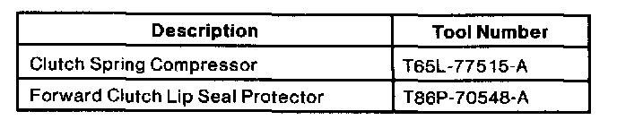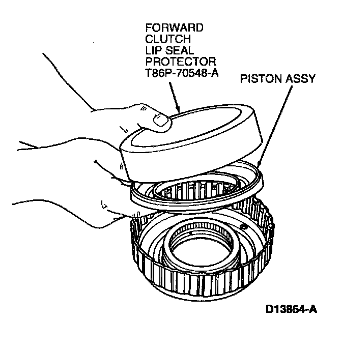1. Lightly coat all seals and surfaces with petroleum jelly before piston installation. Install piston assembly using Forward Clutch Lip Seal Protector T86P-70548-A.