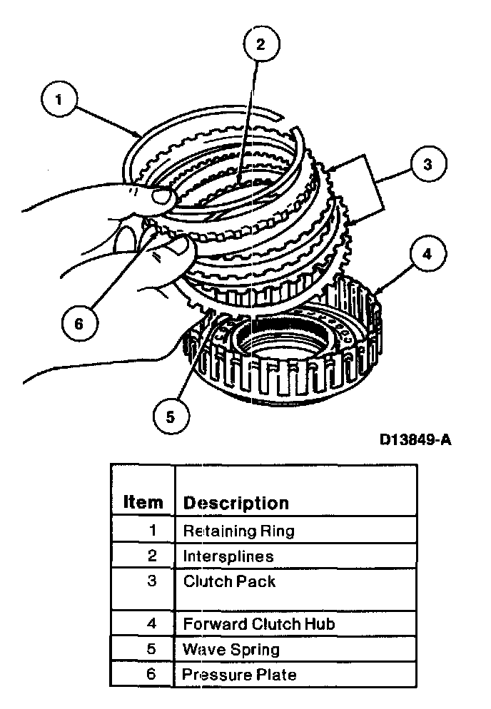 Install wave spring, clutch pack, pressure plate and retaining ring.