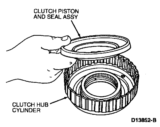 Remove clutch piston and seal assembly. Clean and inspect piston and seal assembly. Service as required.