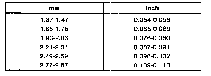5. If clearance is not within specifications, selective retaining rings are available in the following thicknesses:
