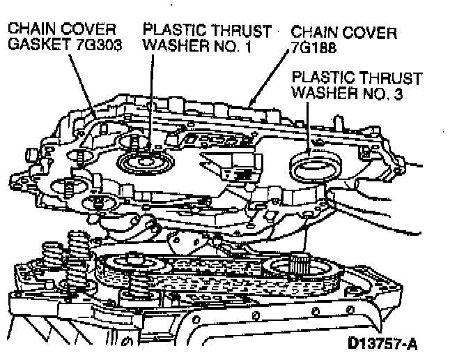 31. NOTE: Plastic thrust washers No. 1 and No. 3 may come off with cover or may stay on sprockets.