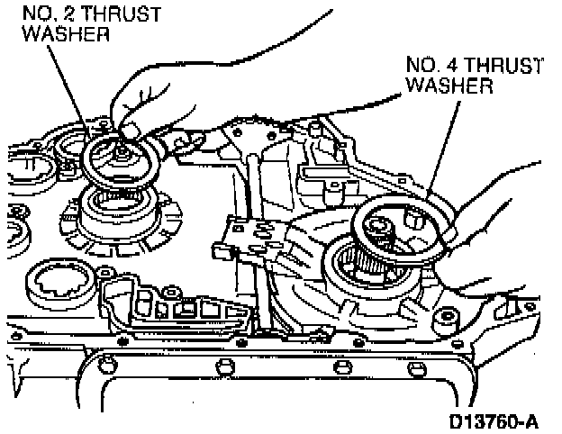 Remove No. 2 thrust washer from drive sprocket support and No. 4 thrust washer from driven sprocket support.