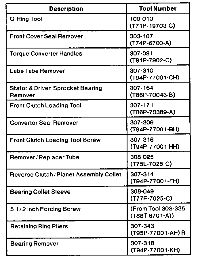 Install Torque Converter Handles 307-091 (T81P-7902-C). Remove torque converter from transaxle. Drain fluid from torque converter.