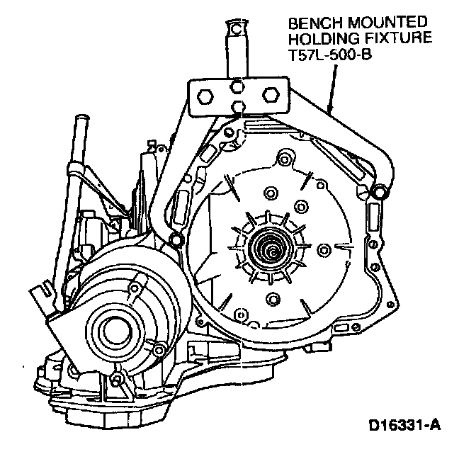 2. Mount transaxle in Bench Mounted Holding Fixture 307-003 (T57L-500-B).