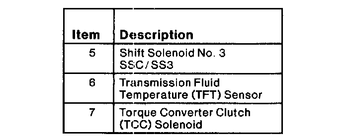 Disconnect electrical connectors from Transmission Fluid Temperature (TFT) sensor and five solenoids.