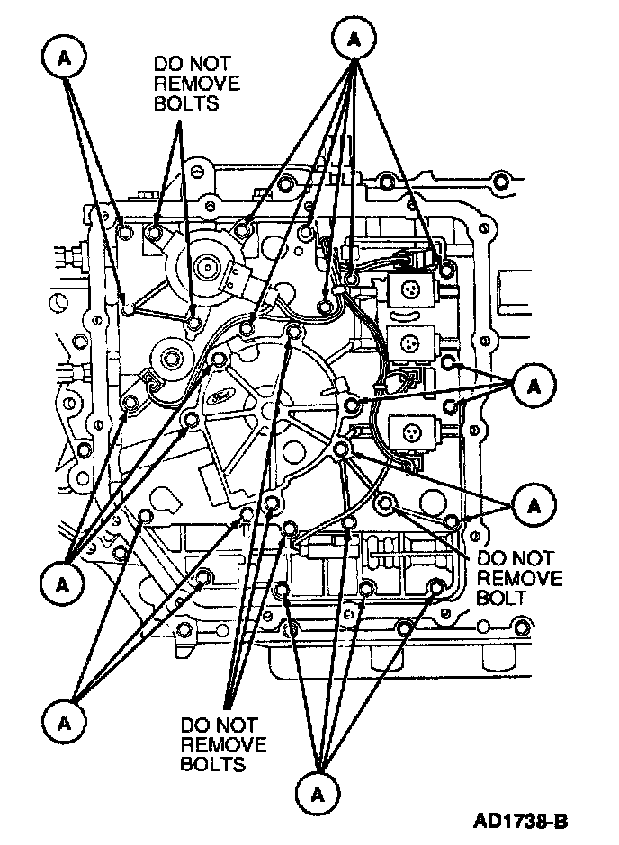 22. CAUTION: Do not remove the two bolts that retain the pump and main control valve body assembly together as the pump assembly components may fall from the main control valve body.